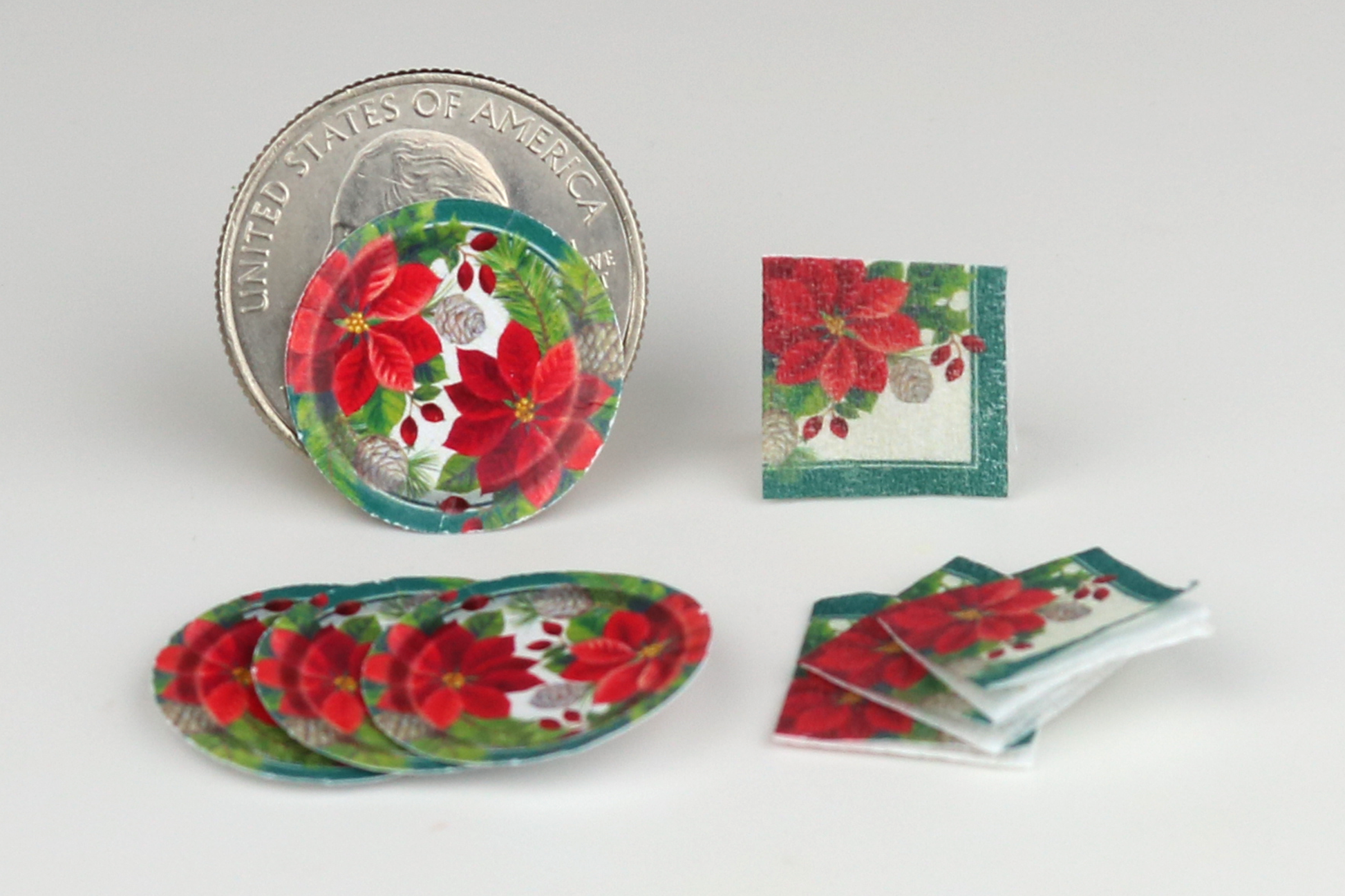 Poinsettias & Pinecones Paper Plates & Napkins Set