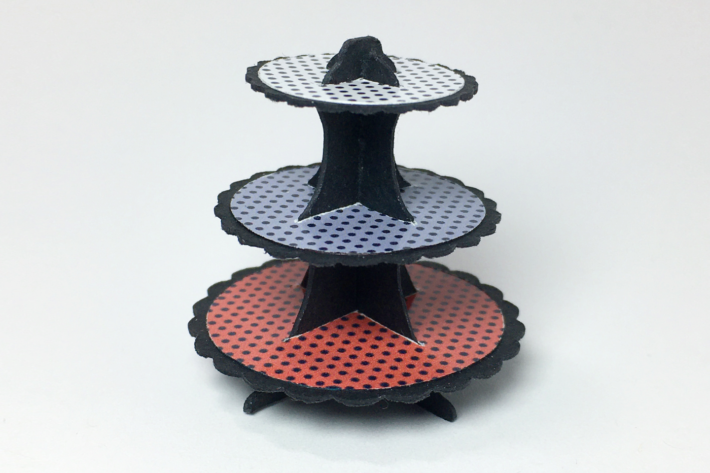 Carefully place your beautifully decorated miniature cupcakes on this three-tier paper stand and celebrate in style! This easy-to-assemble kit can fit 12 cupcakes comfortably. Instructions are detailed on the package.