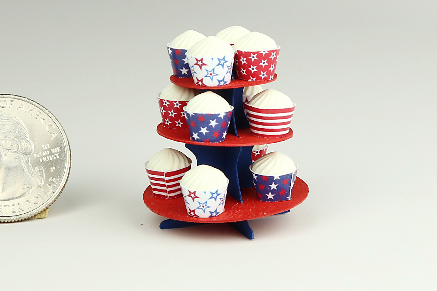 - A completed stand measures 1 ⅛" tall when empty, or 1 ⅜" tall with cupcakes, by about 1 ⅛" wide.