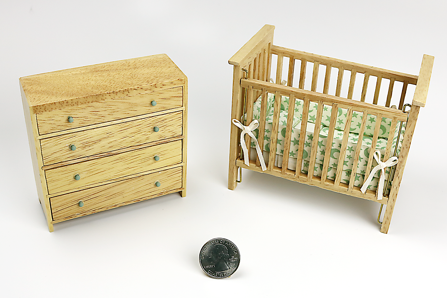 This cozy nursery set features a lovely modern pattern to take your miniature nursery to the next level.