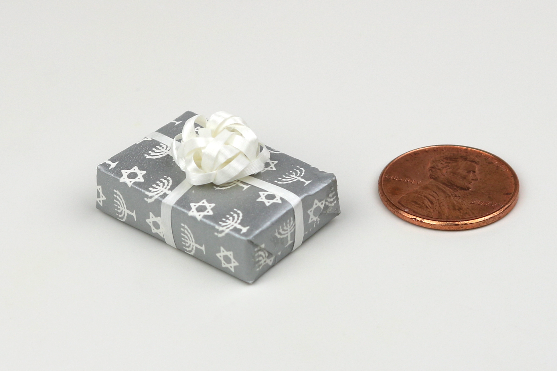 Share light and love this festival season with this sweet gift wrapped in a lovely silver Hanukkah-themed paper, white ribbon and a bow!