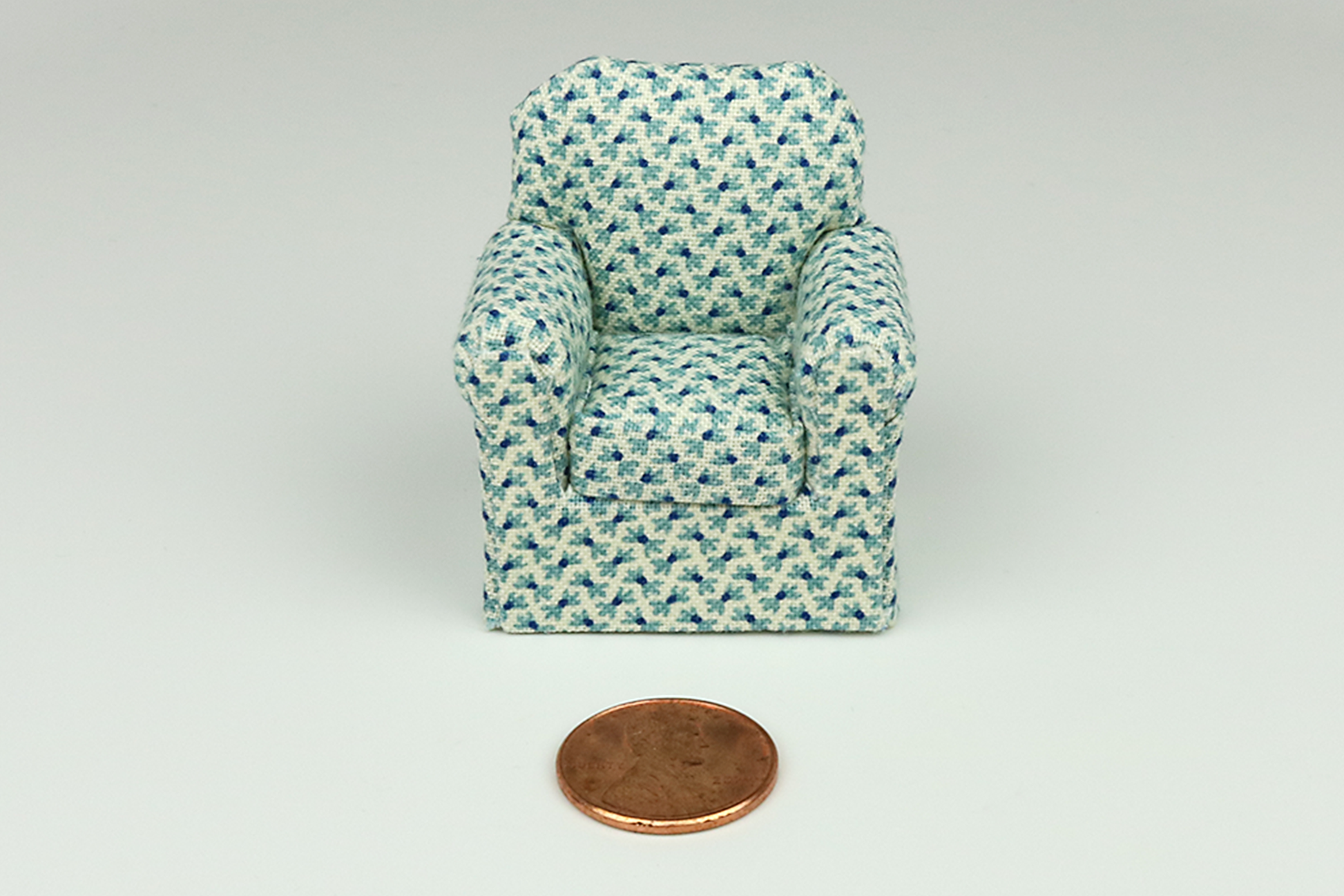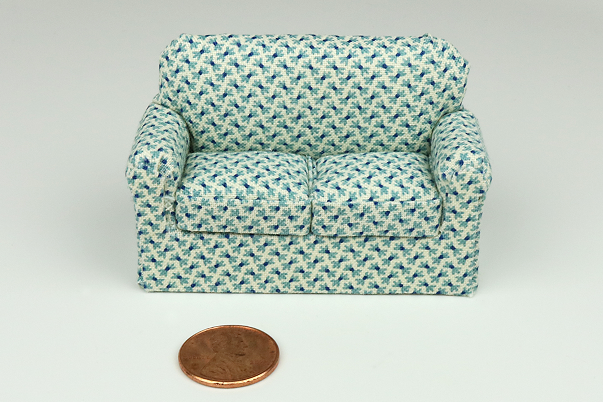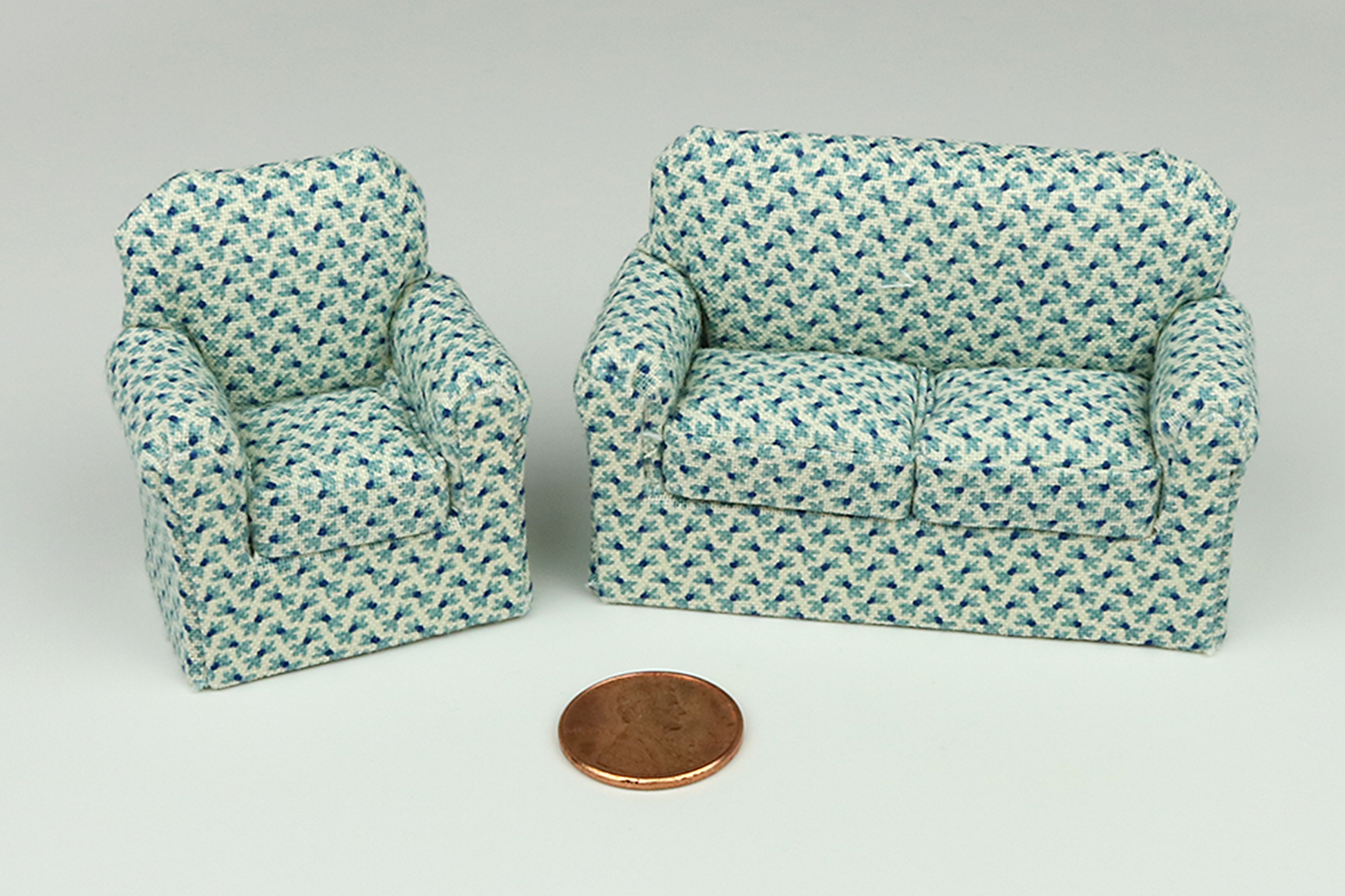 Our half-scale sofas and armchairs are hand made by us in fashionable patterns and fabrics that we have thoughtfully selected to be appropriately sized for 1:24 scaled dollhouses and projects.