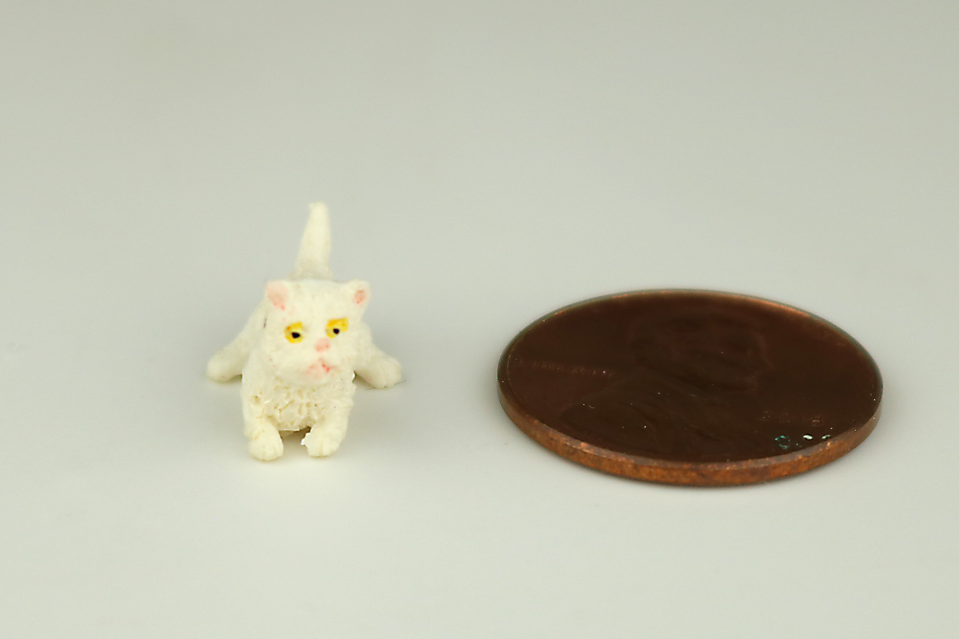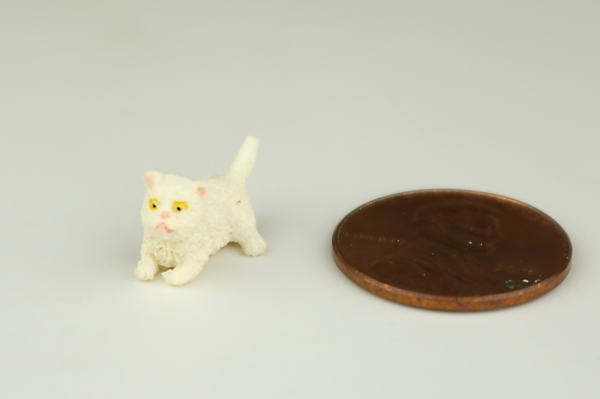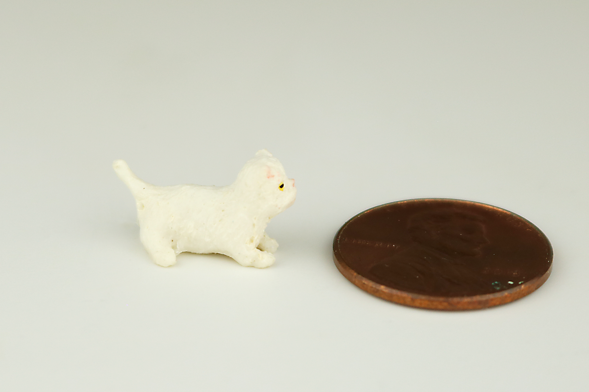 This playful white kitten is looking for a loving home in your dollhouse... adopt an adorable miniature pet today!