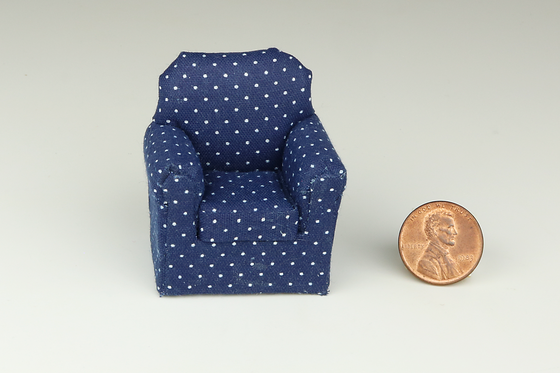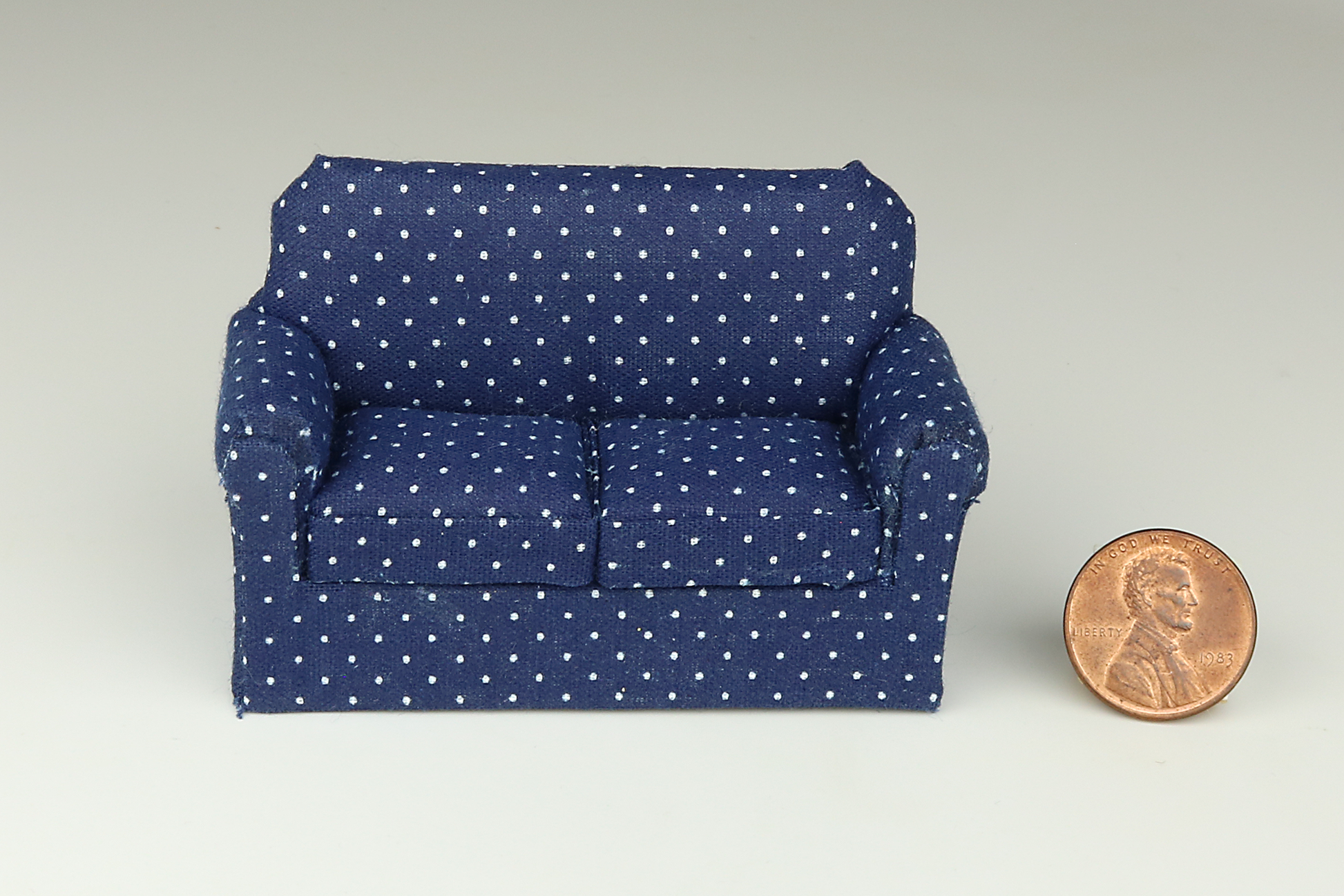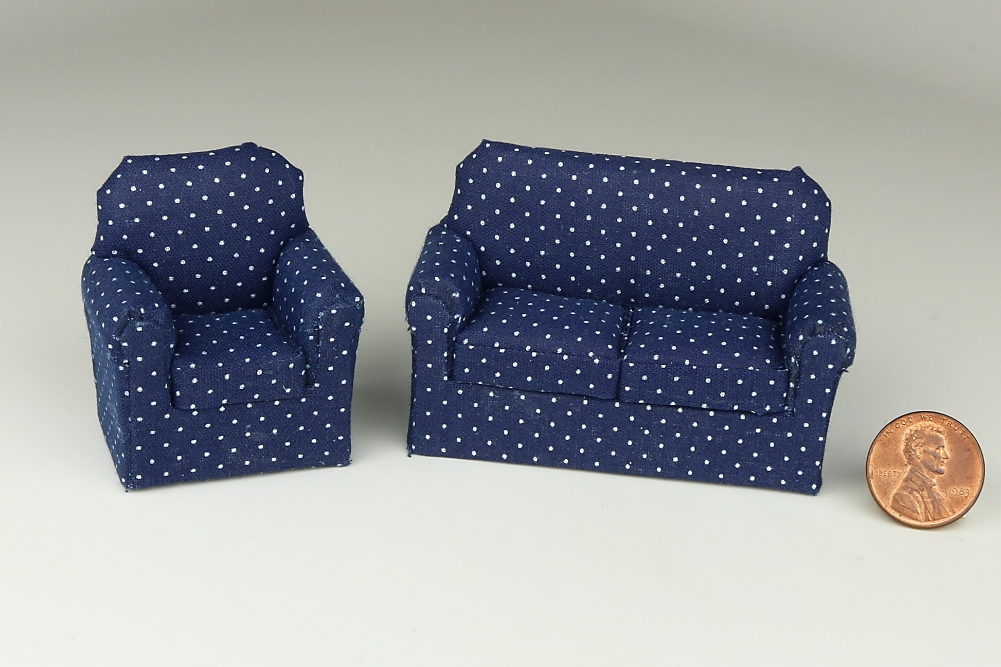 Our half-scale sofas and armchairs are hand made by us in fashionable patterns and fabrics that we have thoughtfully selected to be appropriately sized for 1:24 scaled dollhouses and projects.