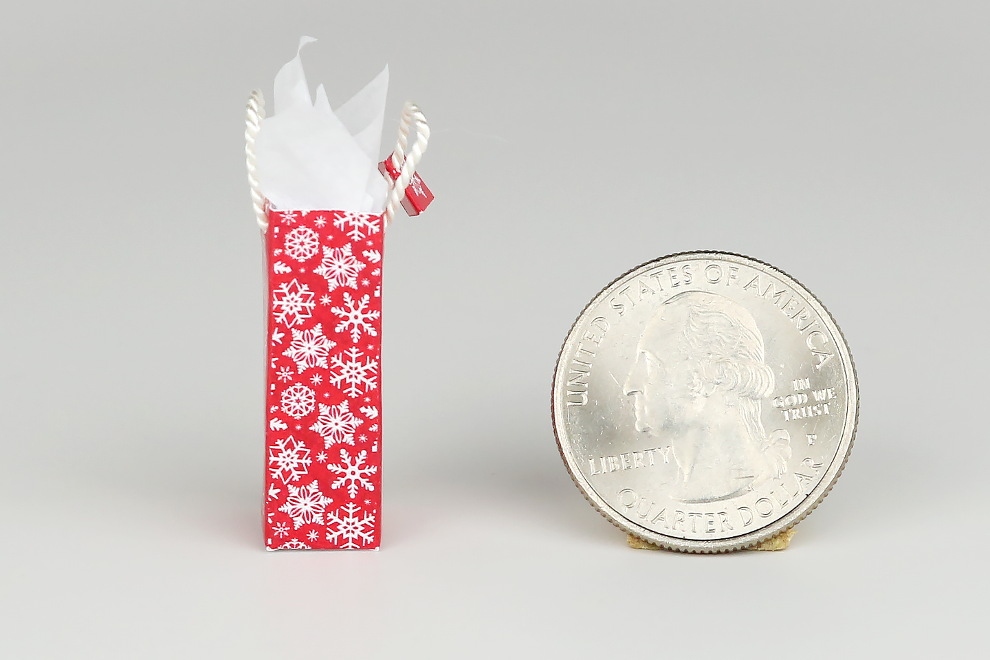 Gifting a teeny bottle of holiday spirits has never been easier with this gift bag! There is a tiny, matching tag on the handle, and it is filled with precisely arranged coordinating tissue paper.