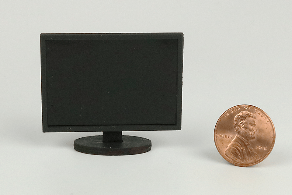 A simple but large-sized flat screen TV for your dollhouse! It is to scale of a real life 50" television.