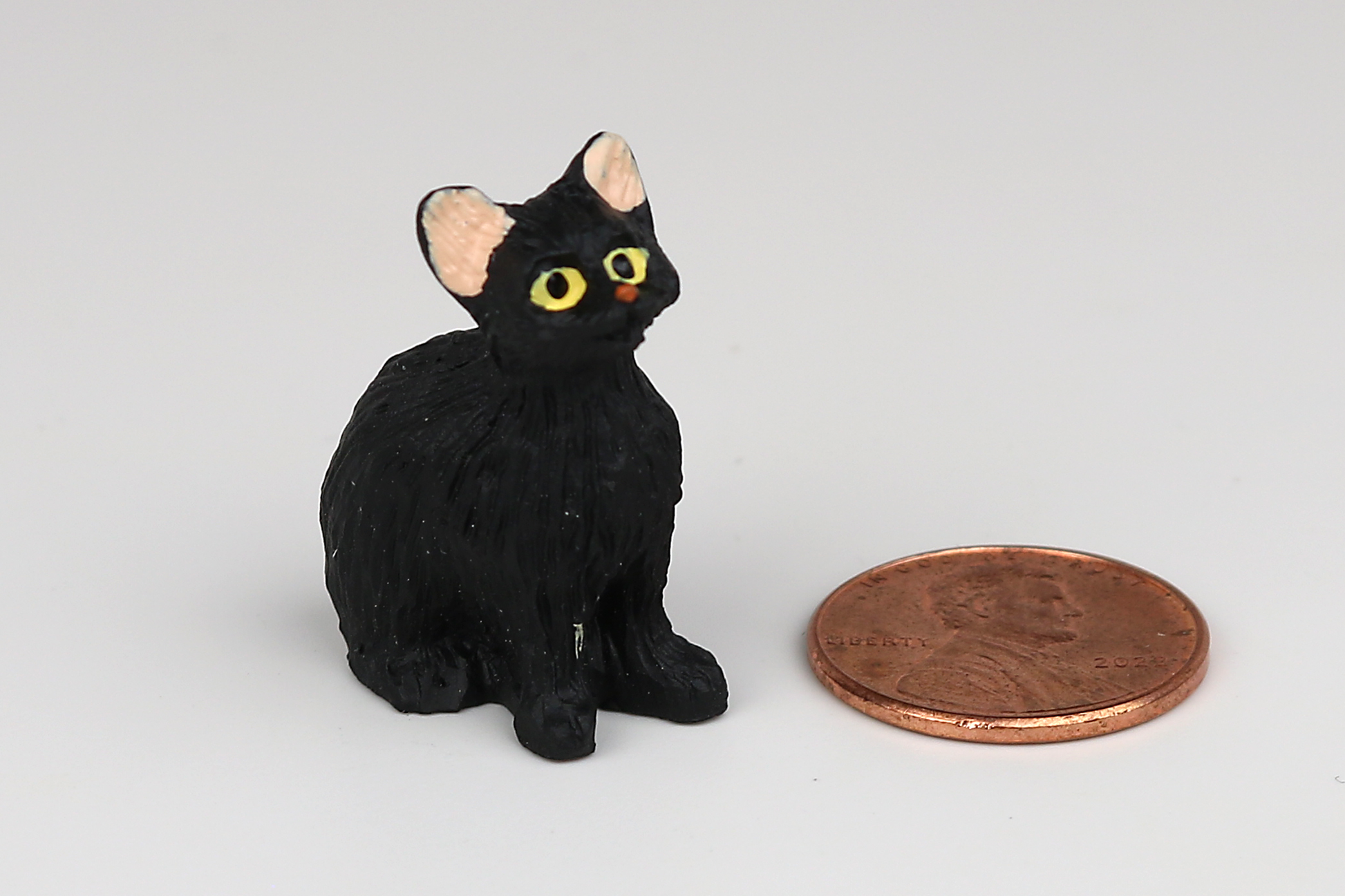 This friendly black cat is wondering if you've got any treats to spare... adopt an adorable miniature pet today!