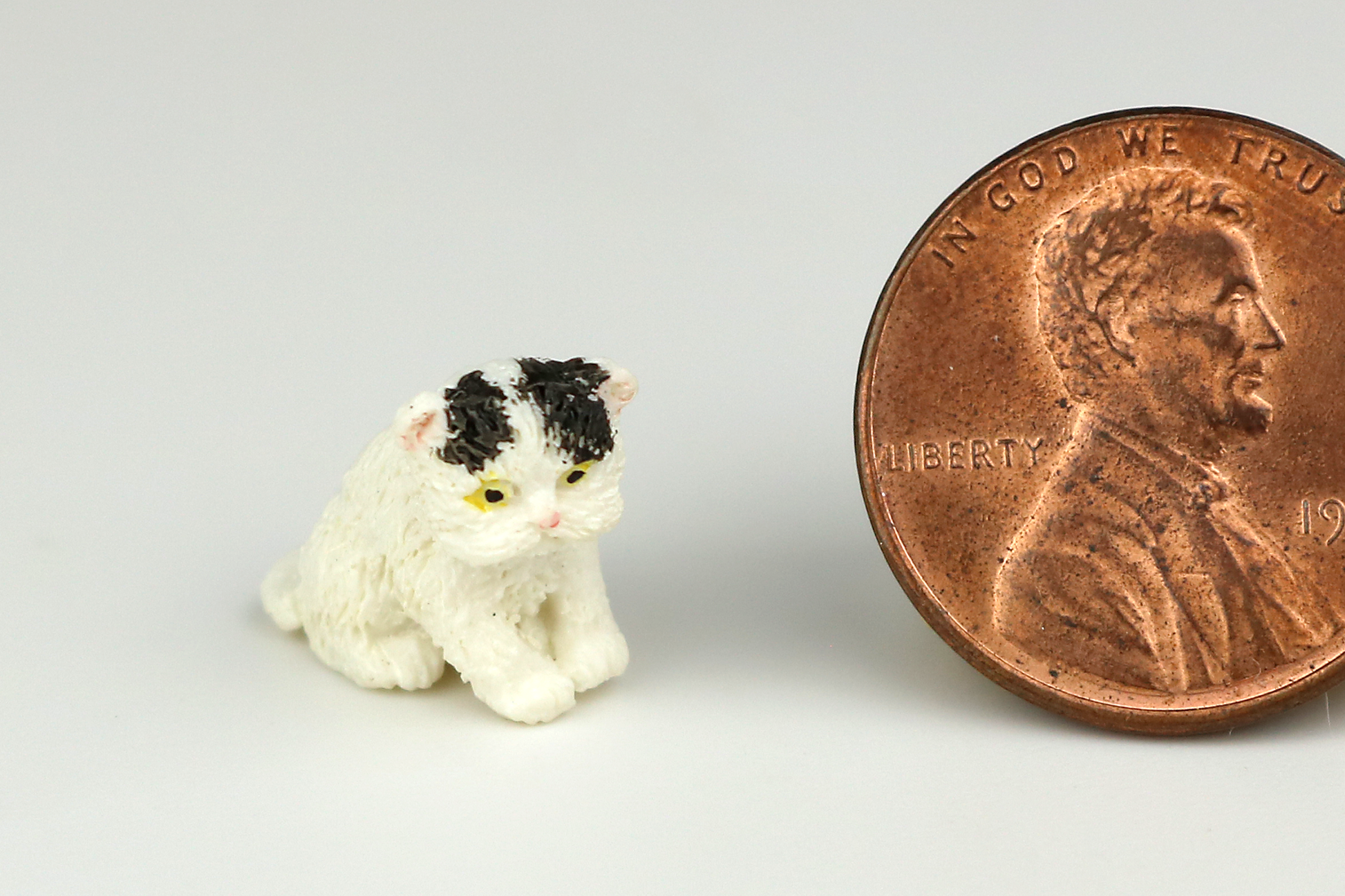 This fluffy little black and white kitten is looking for a loving home in your dollhouse... adopt an adorable miniature pet today!