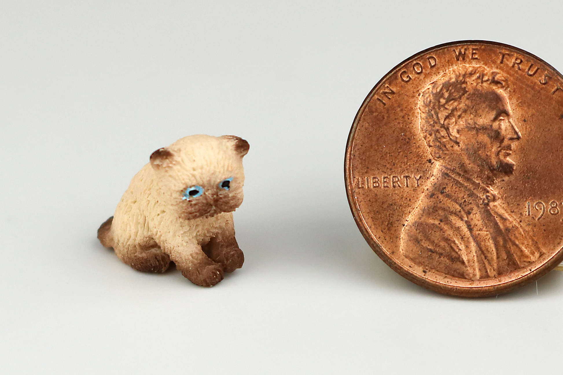 This fluffy little Siamese-patterned kitten is looking for a loving home in your dollhouse... adopt an adorable miniature pet today!