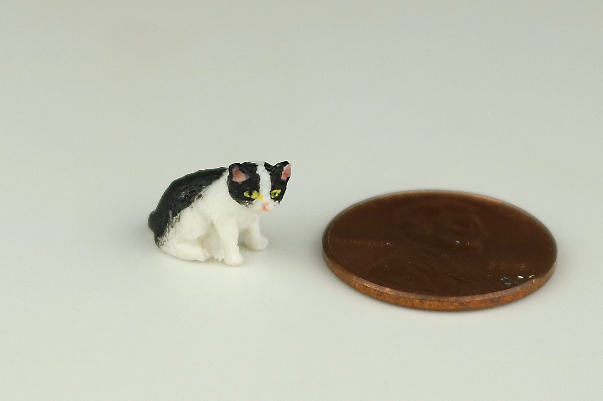 This little tuxedo kitten is looking for a loving home in your dollhouse... adopt an adorable miniature pet today!