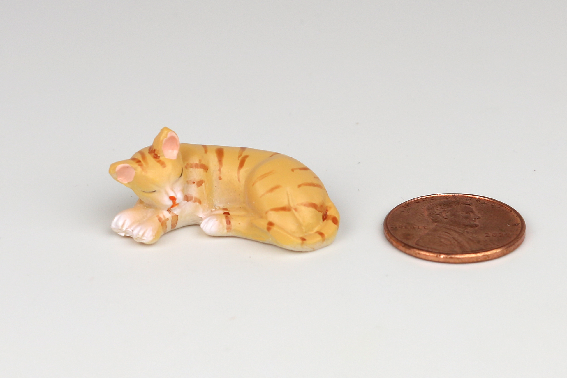 This sleeping orange cat is ready to curl up at home on your miniature sofa... adopt an adorable miniature pet today!