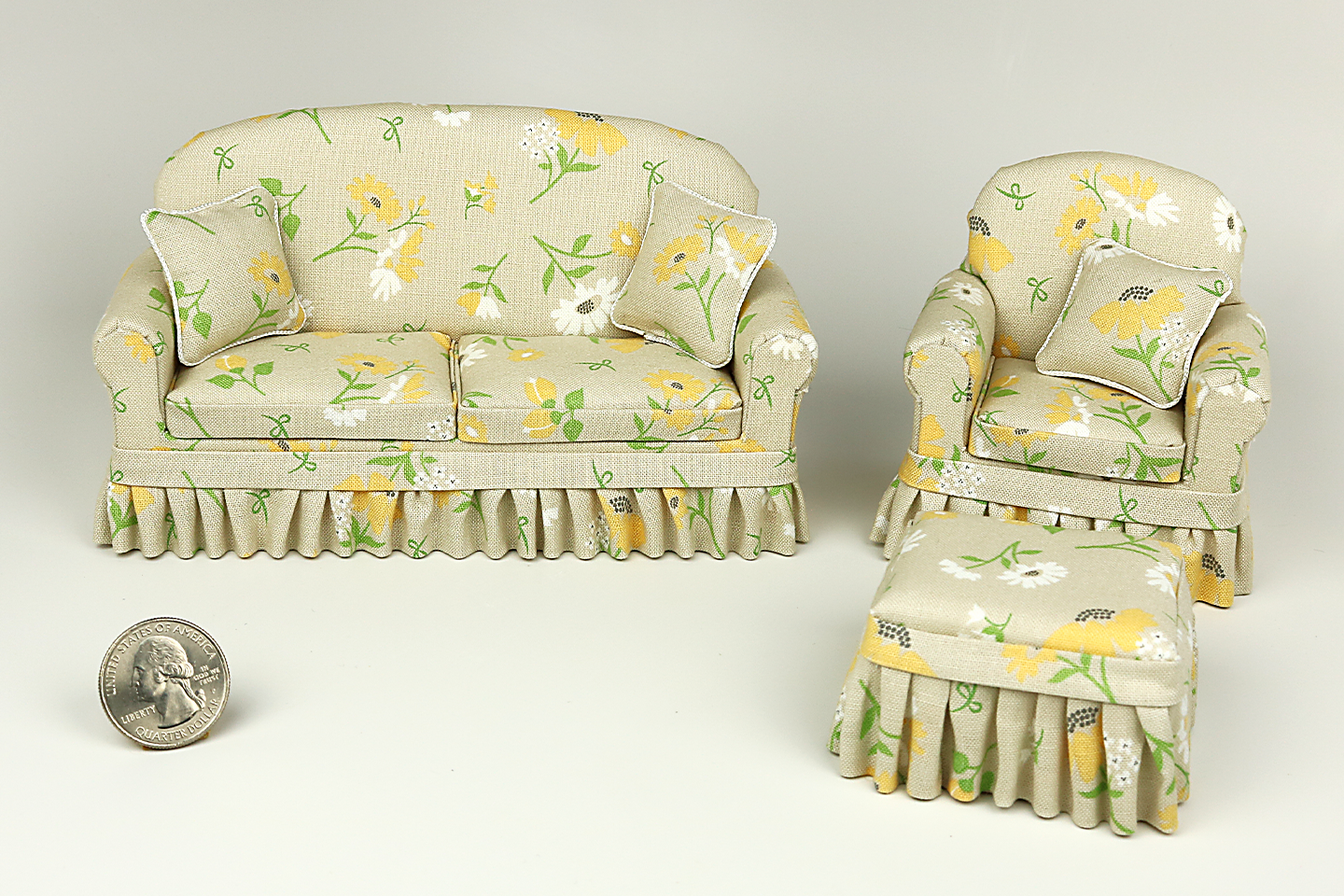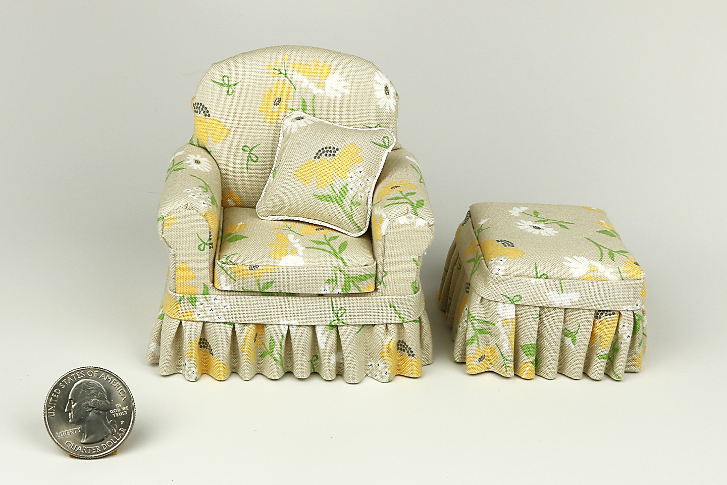- Ottoman: 1 ⅞" wide x 2" deep x 1 ⅛" tall