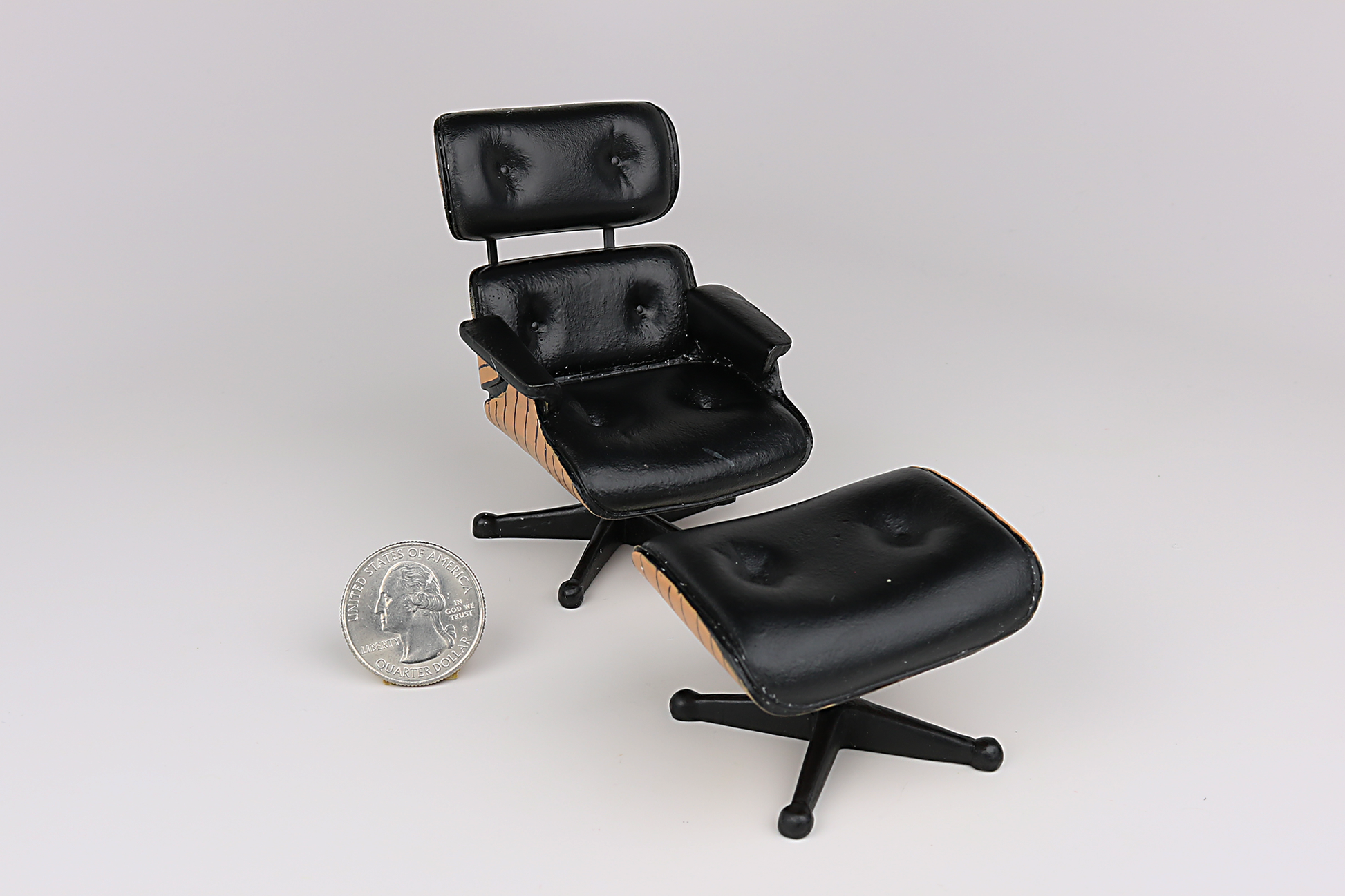 Bring a true traditional Mid-Century Modern look to your dollhouse with this Eames-inspired lounge chair and ottoman!